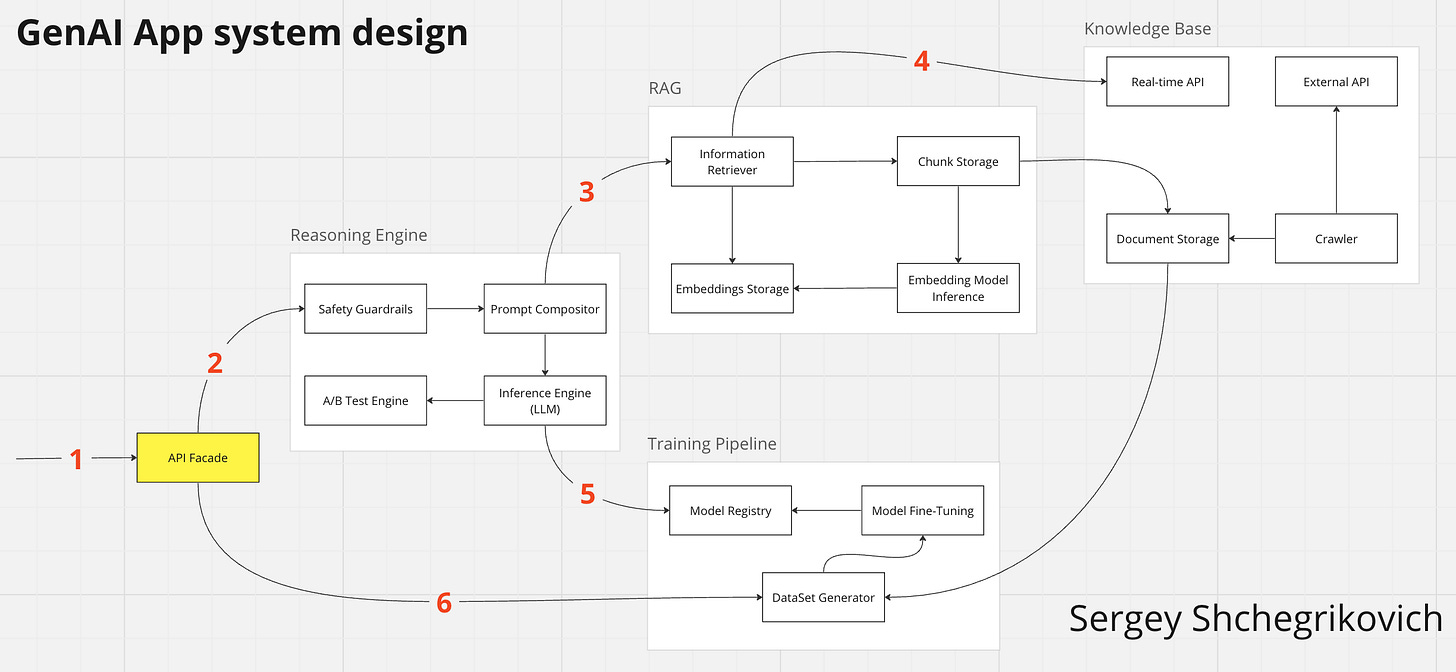 The development of a GenAI app starts with experiments and prototypes. At some point, we need to switch to the big picture and, on a high level, understand what the GenAI app consists of.