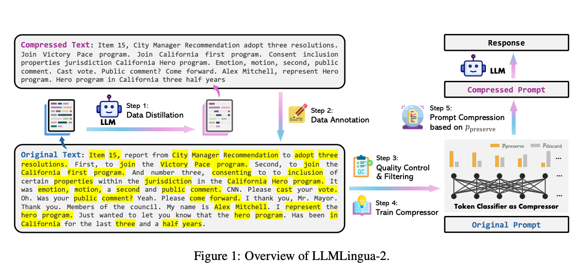 Paper: LLMLingua-2: Data Distillation for Efficient and Faithful Task-Agnostic Prompt Compression - https://arxiv.org/abs/2403.12968