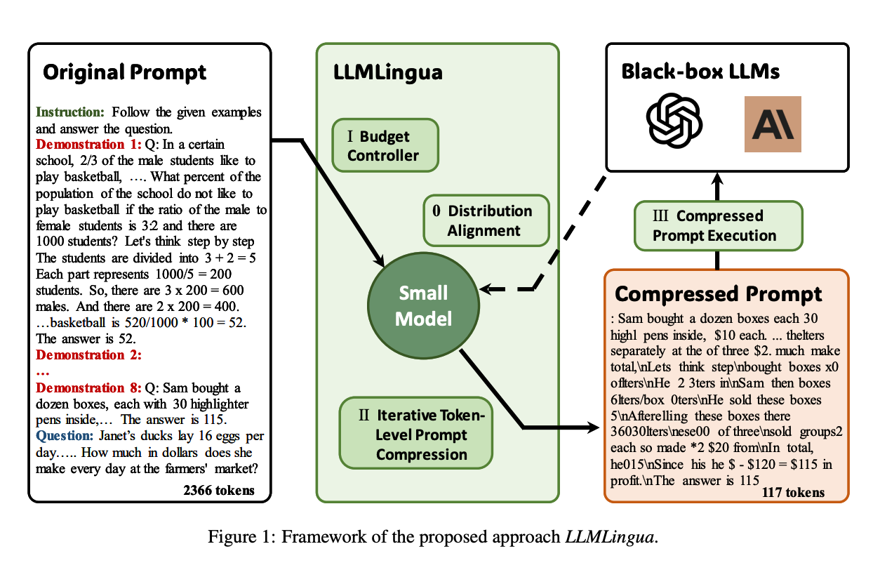 Paper: LLMLingua: Compressing Prompts for Accelerated Inference of Large Language Models - https://arxiv.org/abs/2310.05736