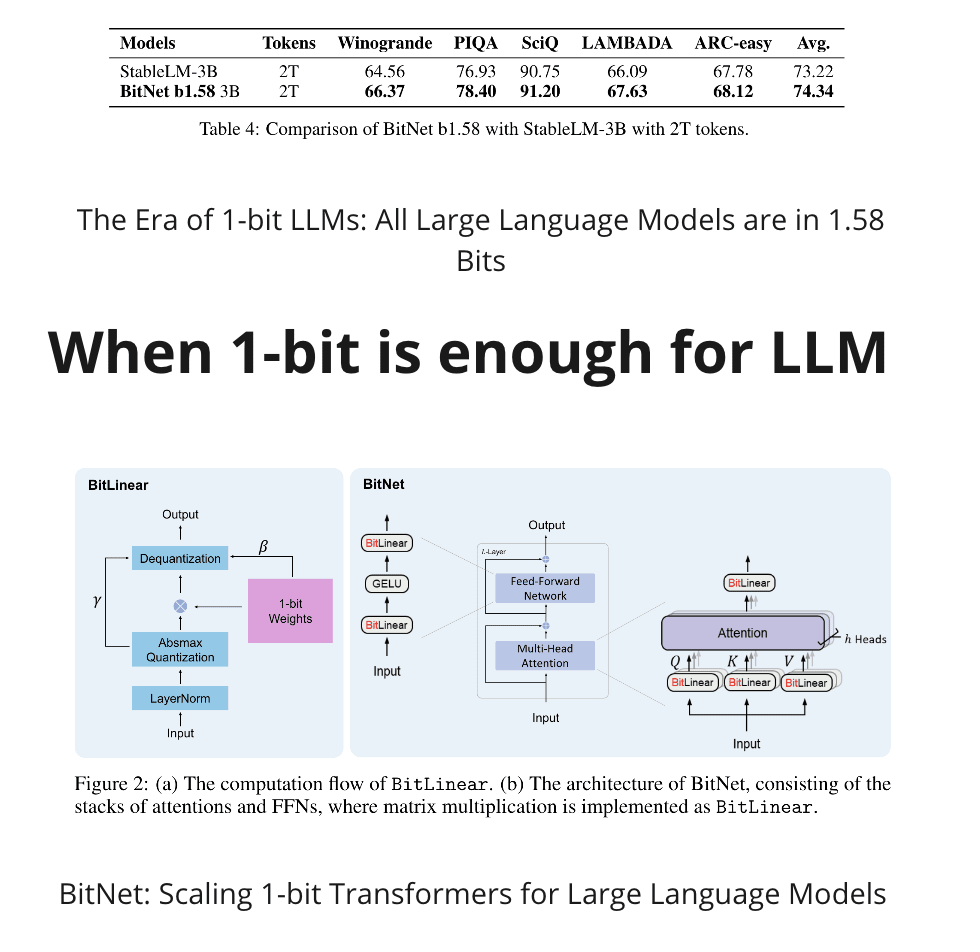 https://arxiv.org/abs/2402.17764v1 - The Era of 1-bit LLMs: All Large Language Models are in 1.58 Bits